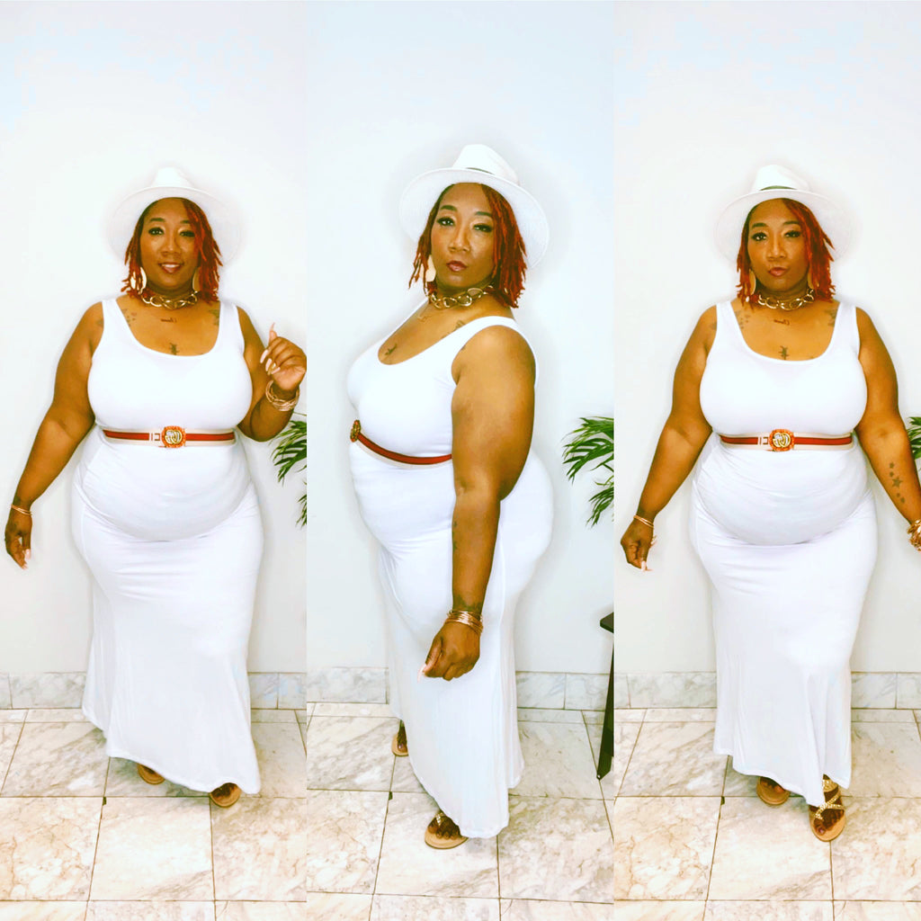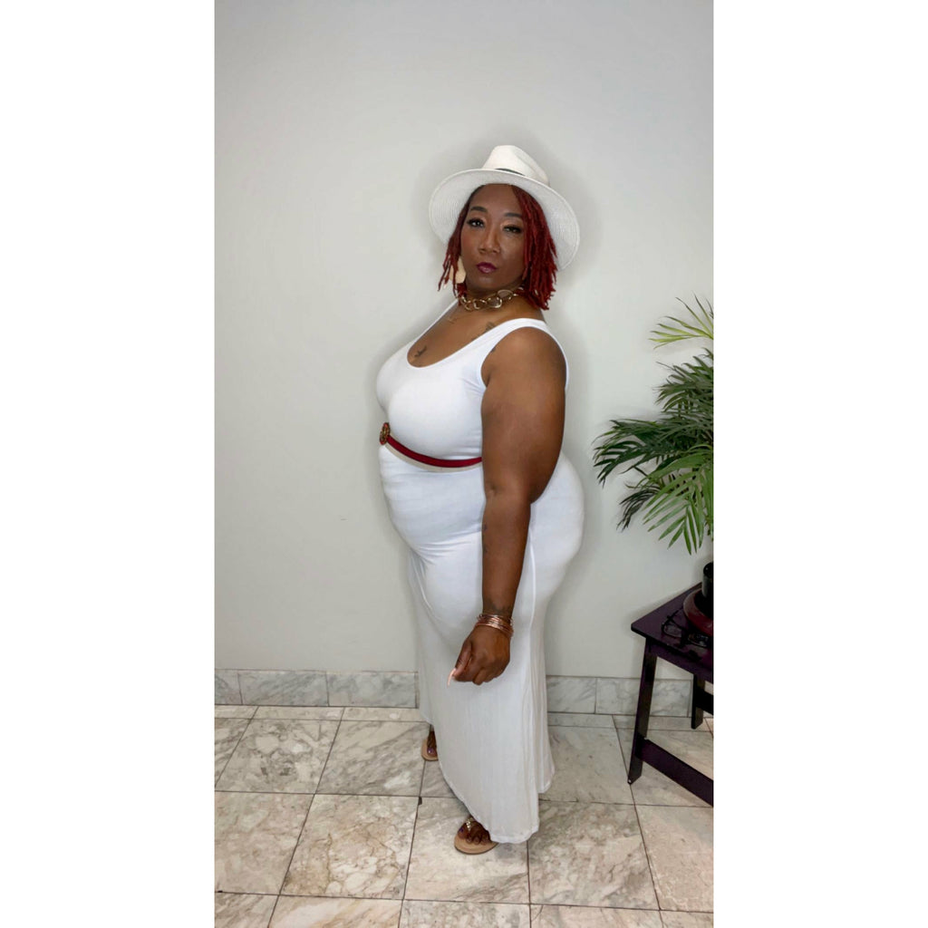All white body shaping maxi dress you can wear dressed up or down super cute elegant and classy